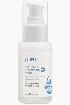 This serum is popular for improving skin texture, reducing blemishes, and strengthening the skin barrier. The Plum 10% Niacinamide Face Serum with Rice Water absorbs easily and works well for most skin types. With consistent use, it helps even out skin tone and gives a healthier appearance.